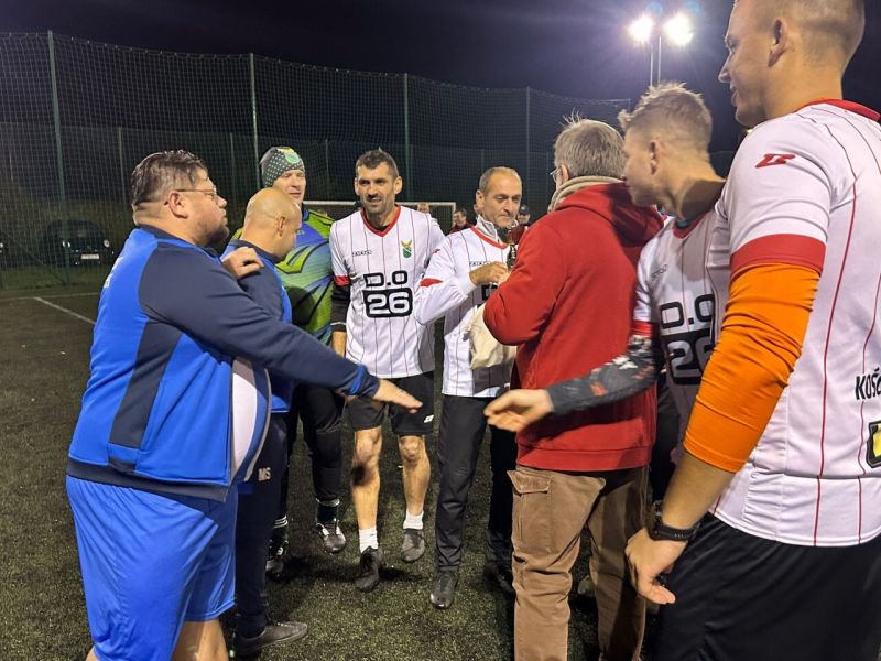 W sobotę, 18 października, na boisku wielofunkcyjnym w Wyrzysku odbył się I Turniej Charytatywny Oldboys o Puchar Burmistrza Wyrzyska. Wydarzenie miało ważny cel - zbiórka środków na zakup defibrylatora AED. Organizatorem turnieju była drużyna Oldboys Wyrzysk, przy wsparciu Ośrodka Sportu i Rekreacji w Wyrzysku oraz Burmistrza Wyrzyska Marcina Piszczek. Warto podkreślić, że Burmistrz nie tylko objął wydarzenie patronatem, ale również aktywnie włączył się w rozgrywki jako zawodnik. W wydarzeniu uczestniczył także Zastępca Burmistrza Wiesław Nowicki wraz z radnymi Rady Miejskiej w Wyrzysku, którzy aktywnie wspierali inicjatywę i towarzyszyli zawodnikom podczas rywalizacji.